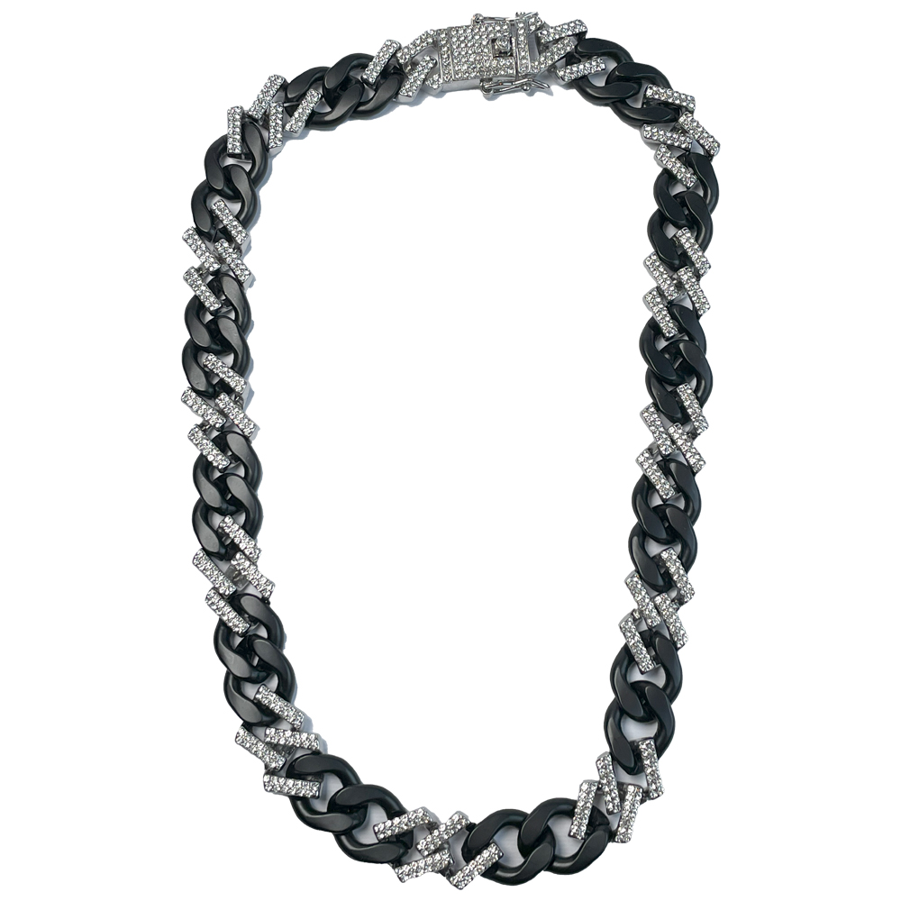 زنجیر مات مشکی، با ترکیب نگینهای کریستالی شفاف، جلوهای لوکس و چشمنواز ایجاد کرده که هم برای مجالس رسمی و هم استایلهای روزمره خاص مناسب است. قفل با نگینکاری دقیق، نه تنها زیبایی این گردنبند را تکمیل میکند، بلکه دوام و امنیت آن را نیز تضمین مینماید.